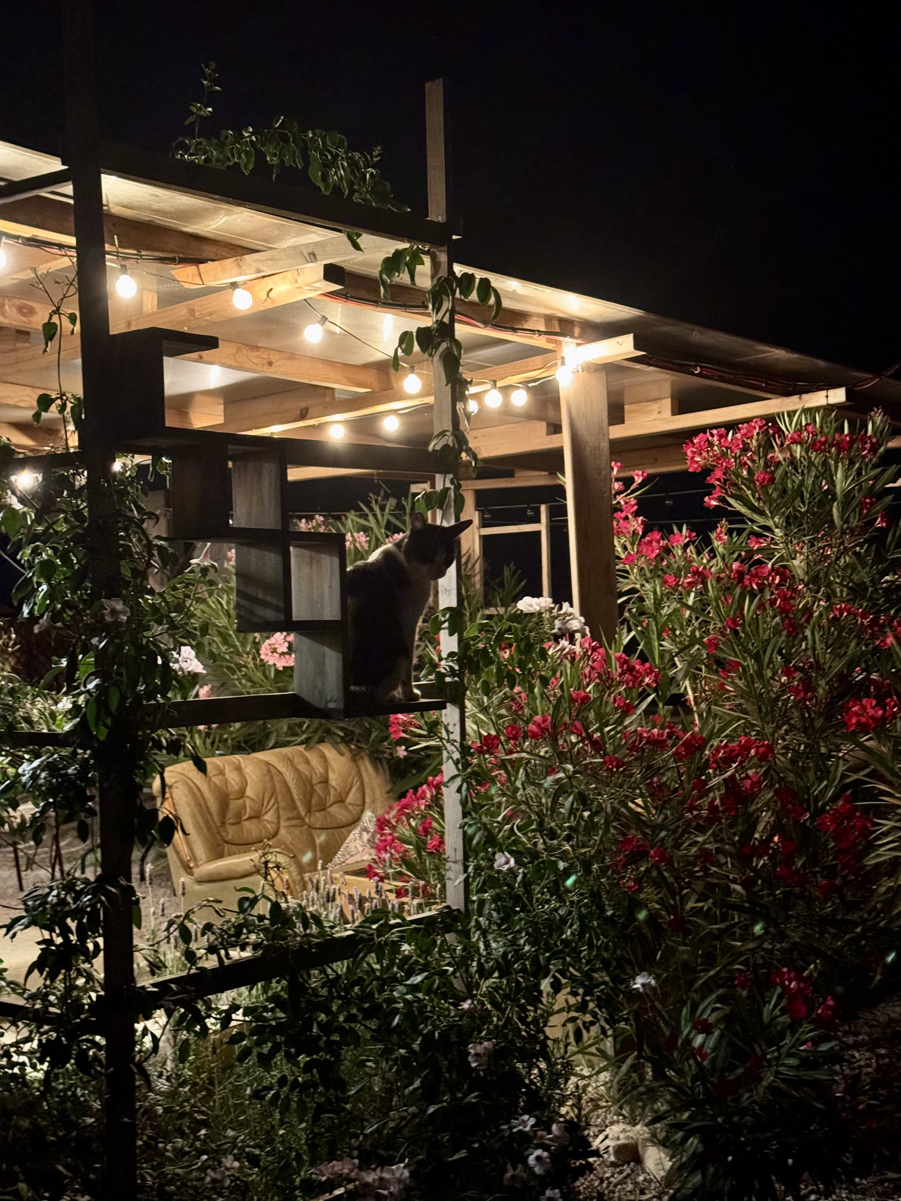 Guests enjoy free time to explore the finca and its animals, share dinner under the open sky, gather by the bonfire with marshmallows, and then take part in a complete astronomical program — including laser-guided constellation tours, optical and robotic telescope observations, live astrophotography streamed to a screen, and big-screen astronomical presentations.