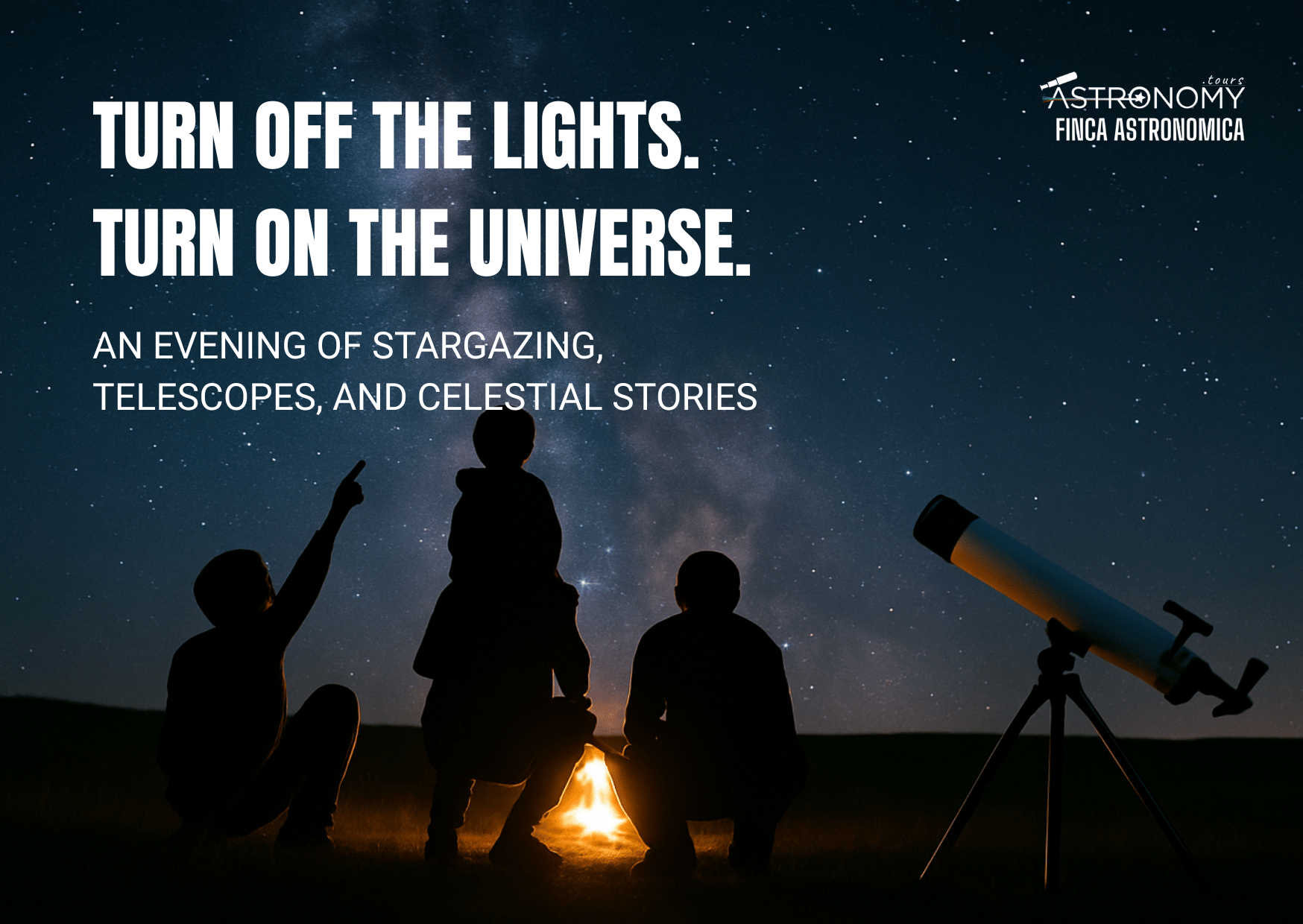 An immersive stargazing experience at Finca Astronómica in Cartagena. Enjoy dinner, bonfire, telescopes, and live astrophotography under the stars — suitable for all ages and levels of curiosity.